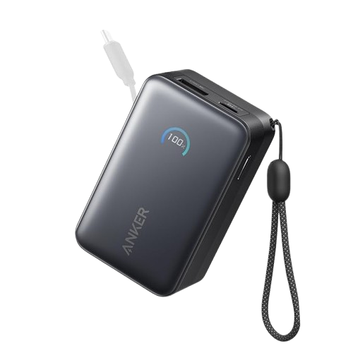 Anker Nano Portable Charger, 10,000mAh 45W Max Compact Power Bank, Travel Essential Phone Battery Pack with 2.3 ft InstaCord Retractable Cable for iPhone 17/16 Series, iPad, Galaxy, Pixel, and More