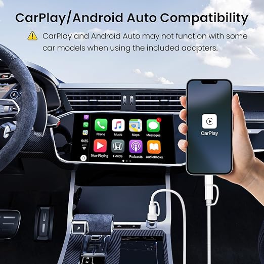 - 4-in-1 Universal Charging: Designed to charge a wide range of devices, it offers multiple connectivity options with USB-A to USB-C and USB-C to Lightning adapters. However, please be aware that CarPlay and Android Auto may not function with some car models when using the included adapters. Please check compatibility before use.