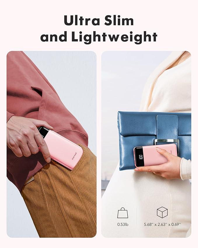 • 【Your Daily Power Hero: From Desk to Dinner】Slim enough to slip into any pocket or small bag, yet powerful enough to rescue your day. Whether you’re grinding at work, catching up with friends, or on a weekend adventure, this power bank ensures your devices stay alive when you need them most. Never miss a moment!
