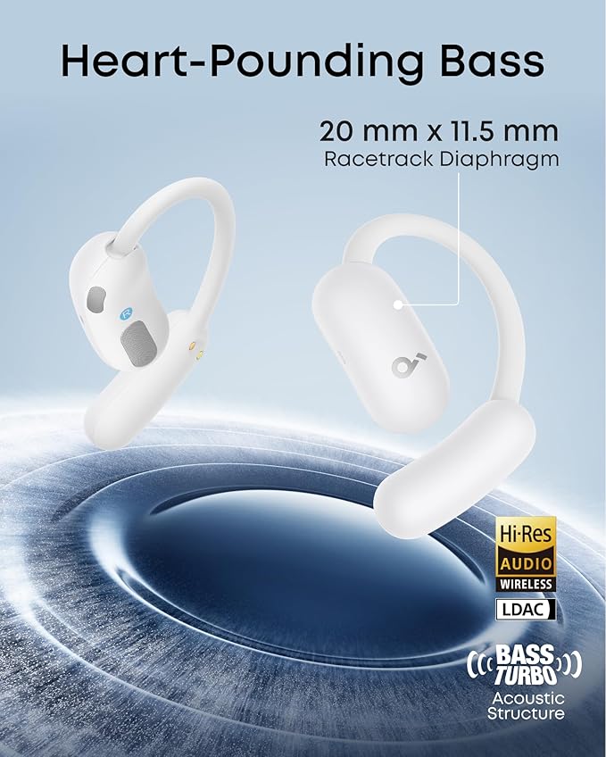 - Deep Bass, Rich Sound: Enjoy 2× deeper bass, clear mids, and vivid treble, fueled by 20 mm × 11.5 mm racetrack drivers and BassTurbo acoustics. Bluetooth 5.4 and LDAC is also supported for stable, Hi-Res audio transmission.